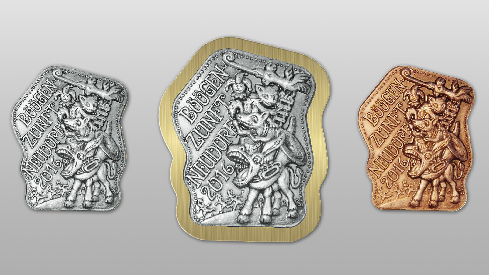 Auf der Plakette, gestaltet vom Künstler Ivo Moosberger, sind die vier Tiere mit Witz in Szene gesetzt und treiben die Räuber in die Flucht. Der Fasnachtsumzug wird mit dem Plakettenverkauf finanziert, die Plakette gilt somit als Eintritt für alle Zuschauer/innen. Wir bedanken uns für Ihre Unterstützung. Die Plakette ist in Gold (CHF 30), Silber (CHF 10) und Bronze (CHF 7) erhältlich.