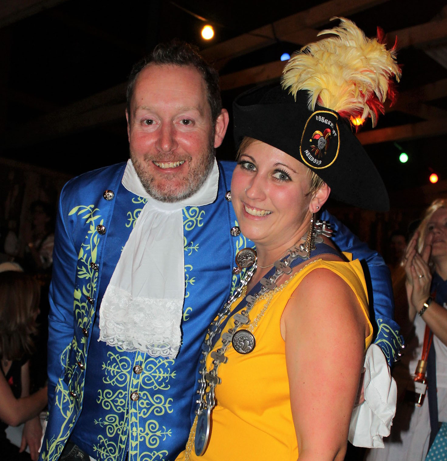Danach durfte Evi I. mit ihrem Mann Adi und ihren Kindern Dario und Larissa und dem Weibelpaar Kerstin und Jürgen Münkel mit ihren Kindern Hannes, Moritz und Andrin als verschiedene Märlifiguren in der Turnhalle begrüsst werden. Nach der lautstarken Begrüssung übergab der bisherige Zunftmeister Tschüse I. sein Amt mit den Insignien (Kette, Hut, Zepter) an die diesjährige Zunftmeisterin Evi I. Anschliessend gab es eine riesige Polonaise. Nach den Gratulationen zeigten die Kollegen von Adi eine tolle Tanzeinlage, danach machte die Joggumusig Nüderef mit ihrem Auftritt grosse Stimmung und dann erzählten die Kollegen des Zunftmeisterpaars noch ein Märli.